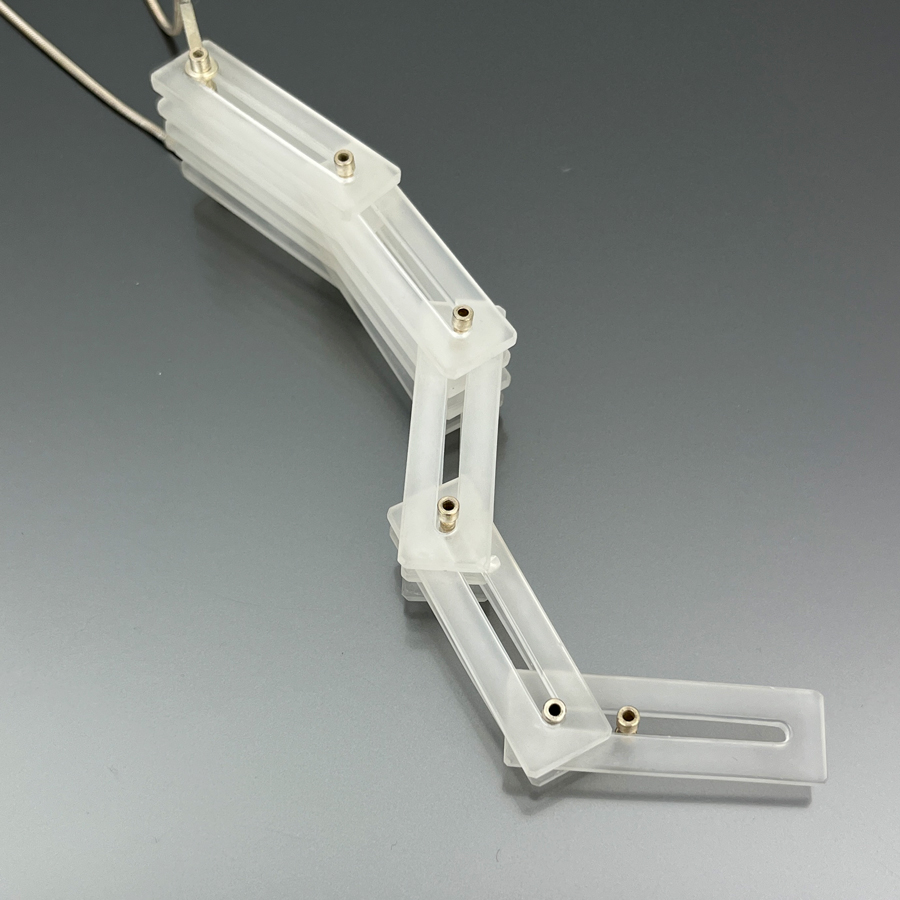 Forme precise, quasi meccaniche, che tuttavia rivelano una dimensione più intima. Ogni elemento è realizzato con cura e in questa apparente perfezione emerge una sottile tensione tra rigore e sensibilità.