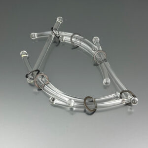 Le opere di Blanche sono costruite attraverso moduli in vetro e metallo e richiamano con precisione il lessico della modernità industriale: catene, sequenze, sistemi che evocano linee di montaggio, meccanismi seriali, il ritmo esatto e inesorabile del tempo tecnico.