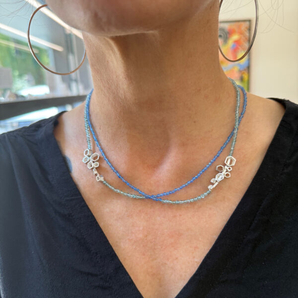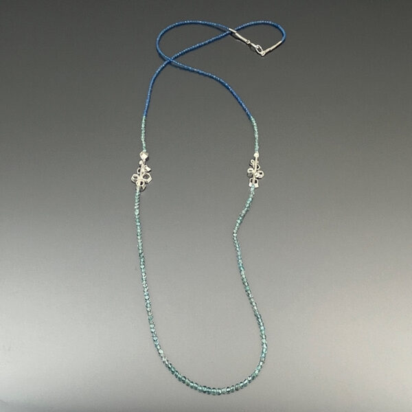 Collana lunga in Blue Agata e Apatite, con piccoli elementi mobili e chiusura in argento 925