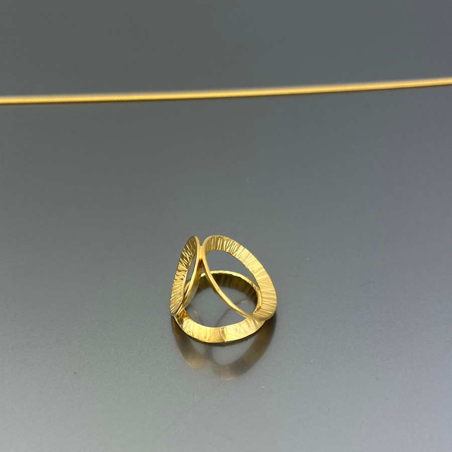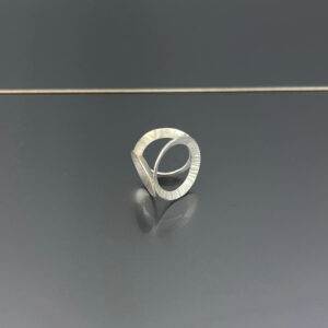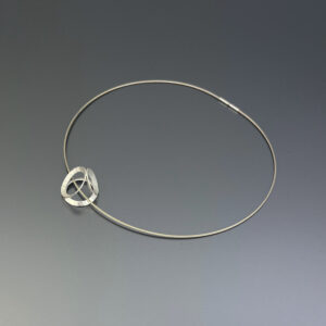 Una collana equilibrata e raffinata, con elemento tridimensionale formato da 3 anelli in argento saldati tra loro.