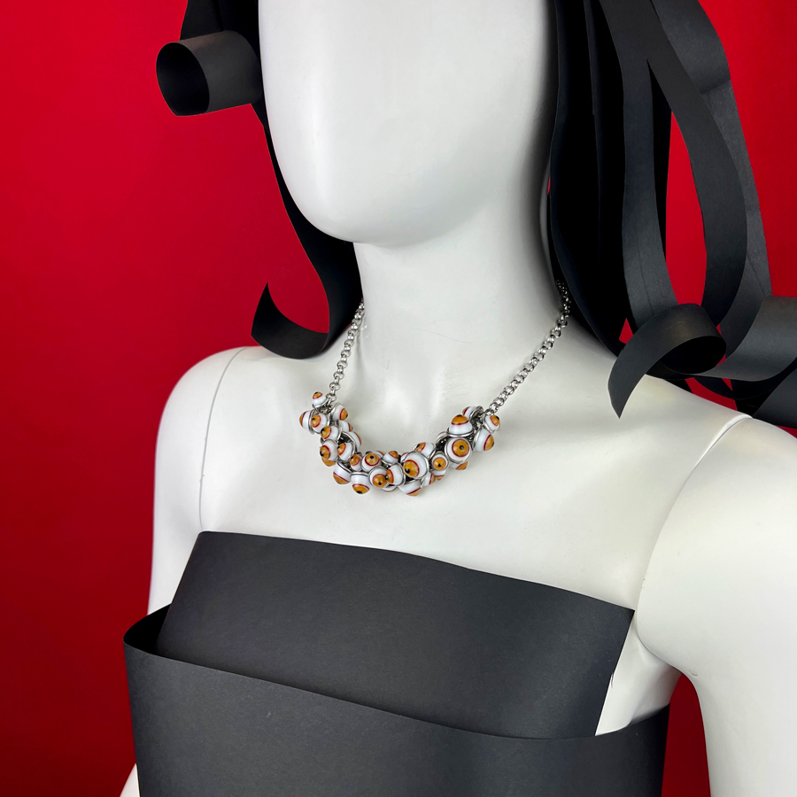 Collana con più di 50 occhi realizzati in vetro con la tecnica della lavorazione a lume tipica dell’isola di Murano.