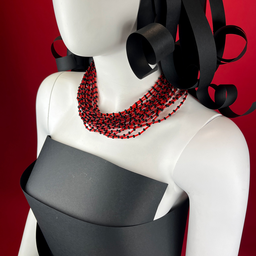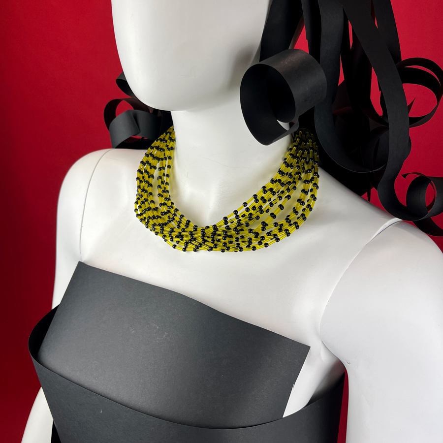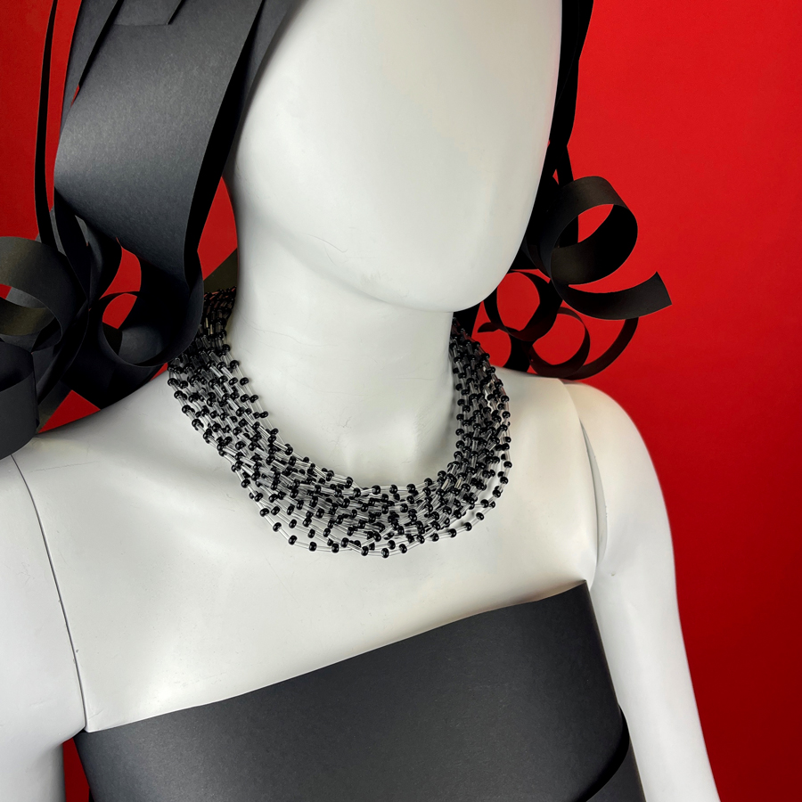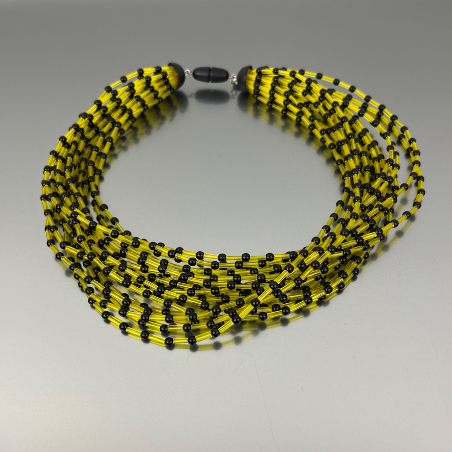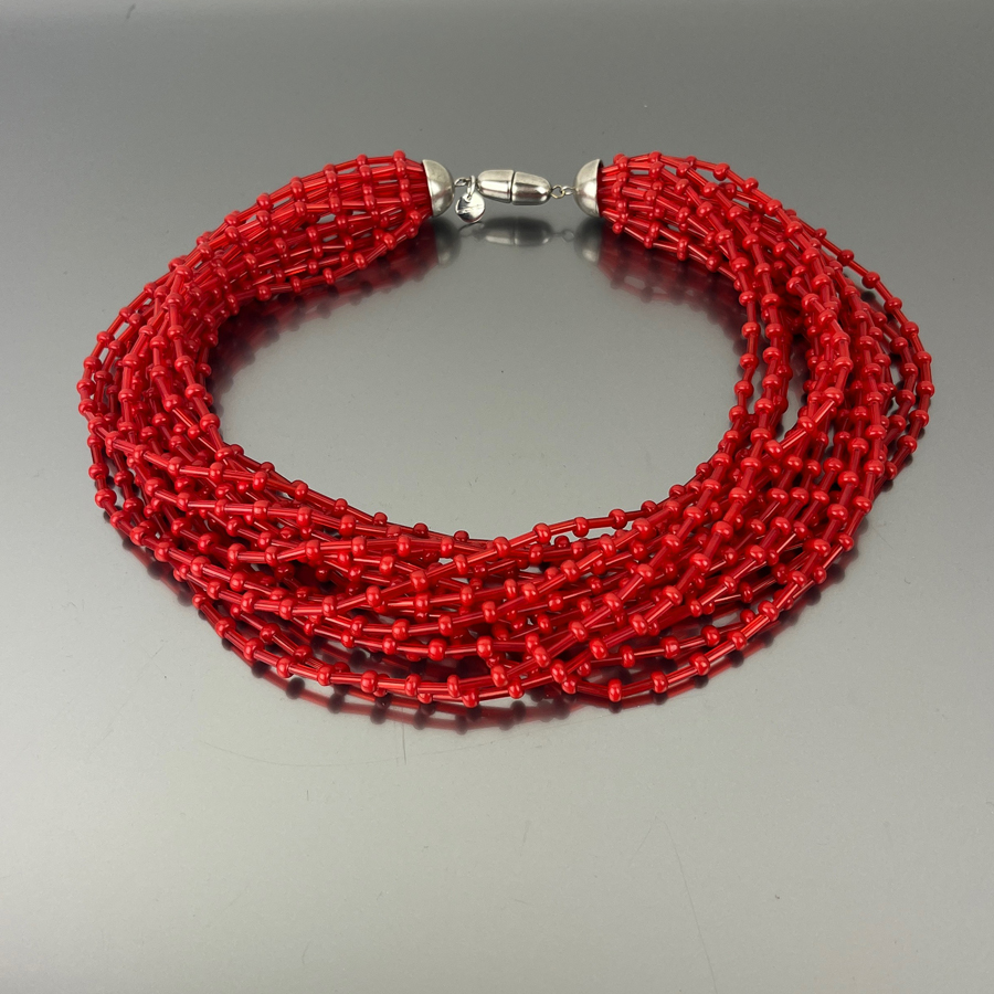 Collana girocollo in vetro a 18 fili . Chiusura a vite nichel free. La collana girocollo risulta molto confortevole.