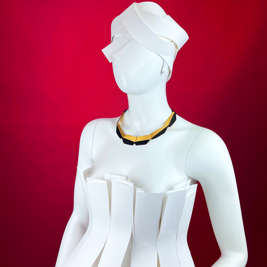 Collana girocollo composta da sottili elementi in argento agganciati.