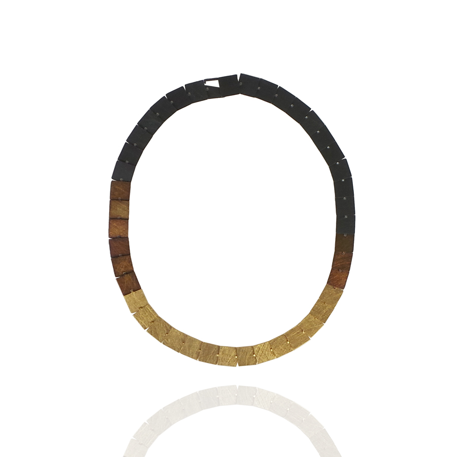 Una volta indossata, puoi ruotare la collana per mettere in maggiore evidenza gli elementi placcati oro, placcati bronzo o in argento ossidato.