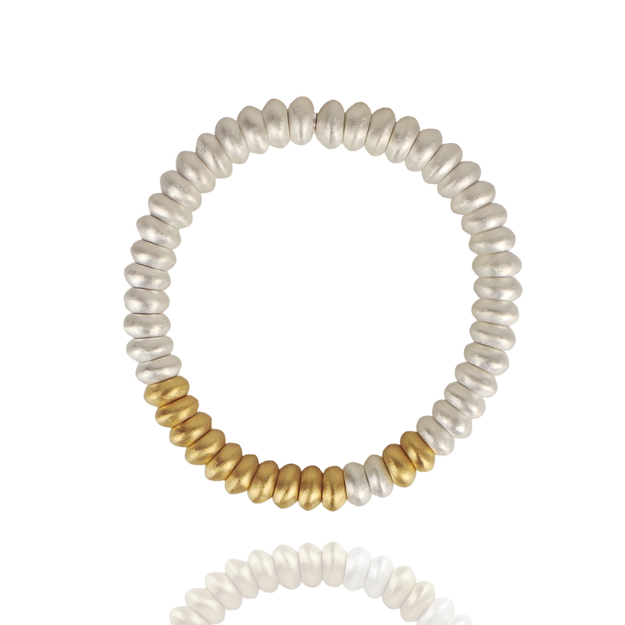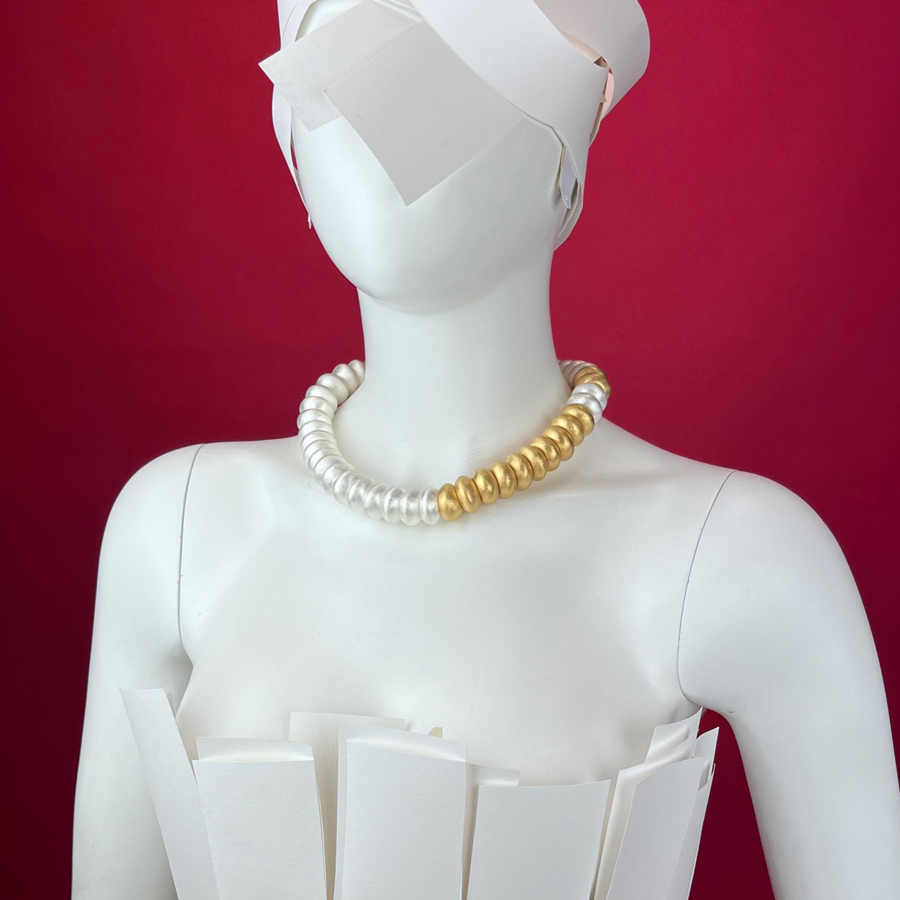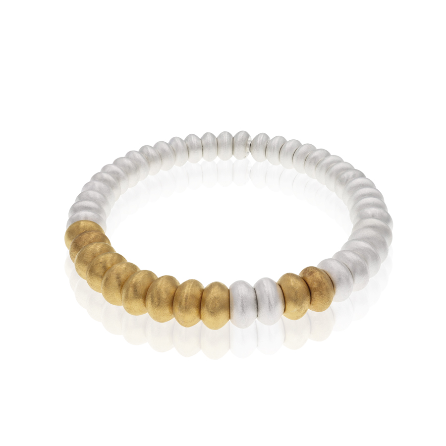 Girocollo con elementi in argento e argento placcato oro con chiusura calamitata a scomparsa.