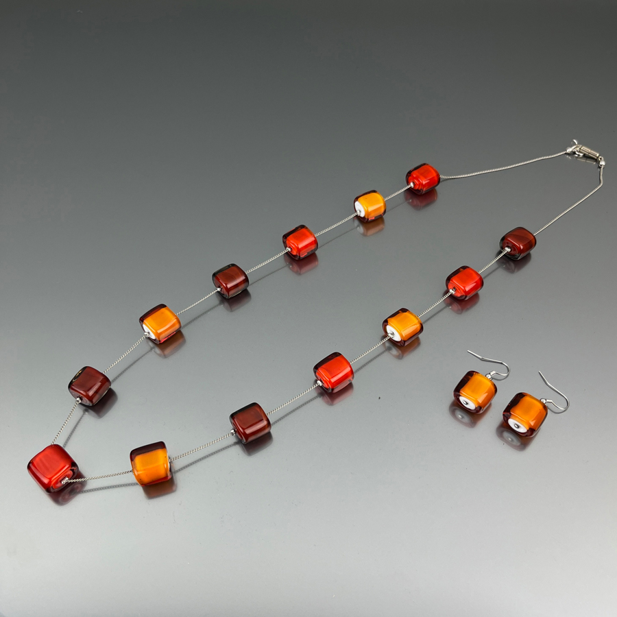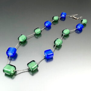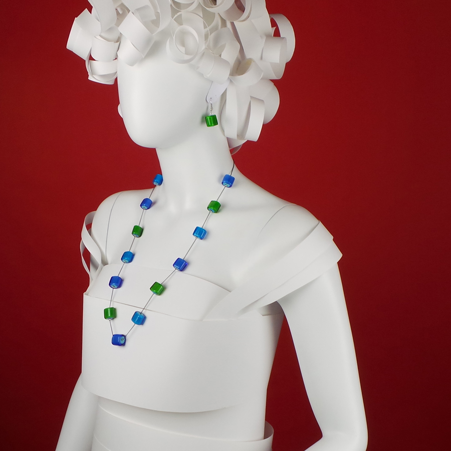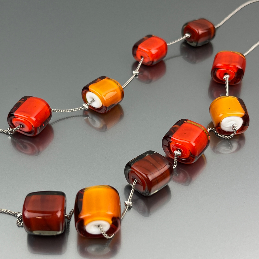 Le perle sono realizzate con la tradizionale tecnica del vetro a lume a Murano nel laboratorio di Marina e Susanna Sent.