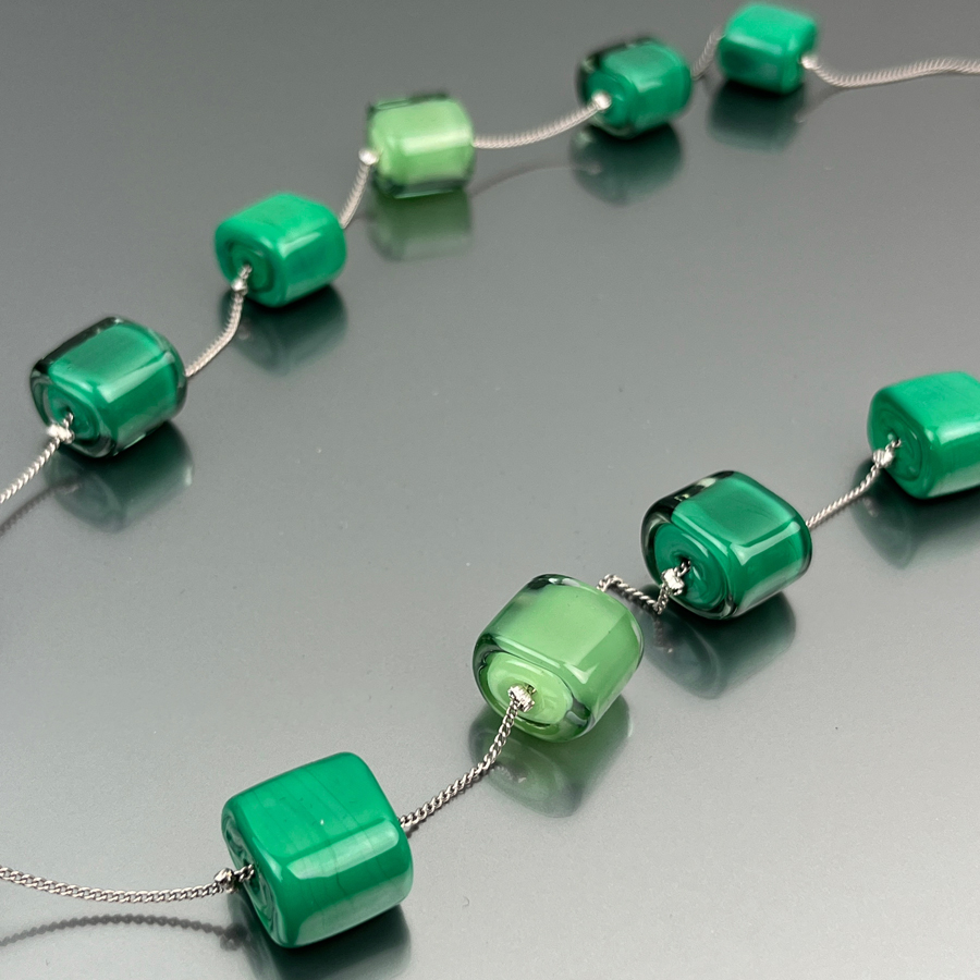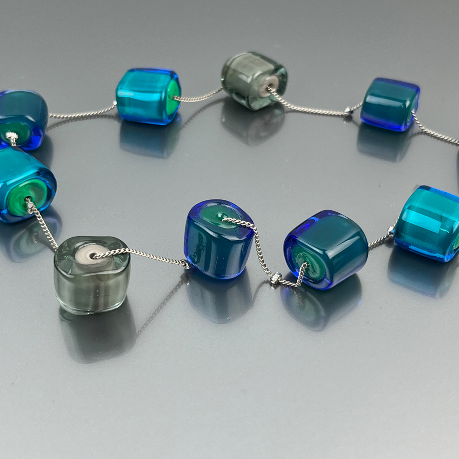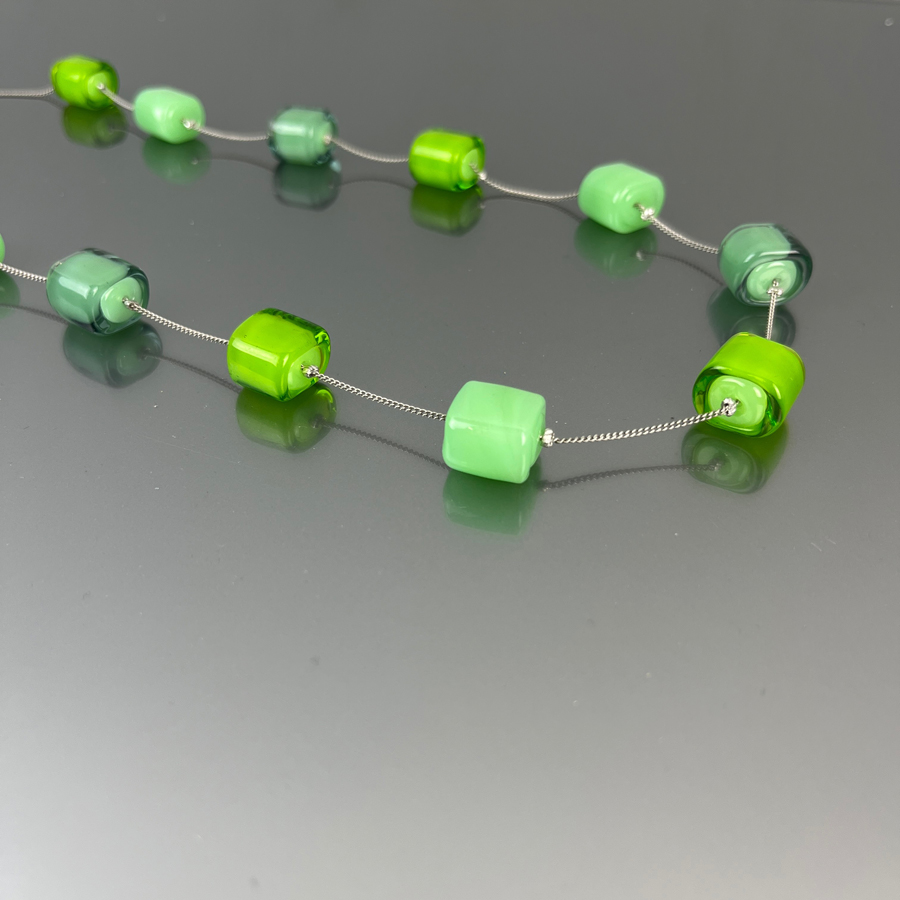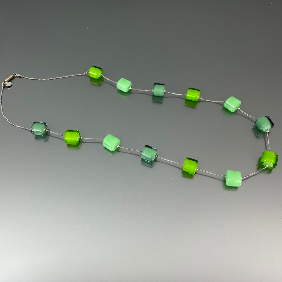 Vetro, catenina in metallo anallergico, chiusura a vite