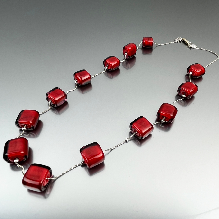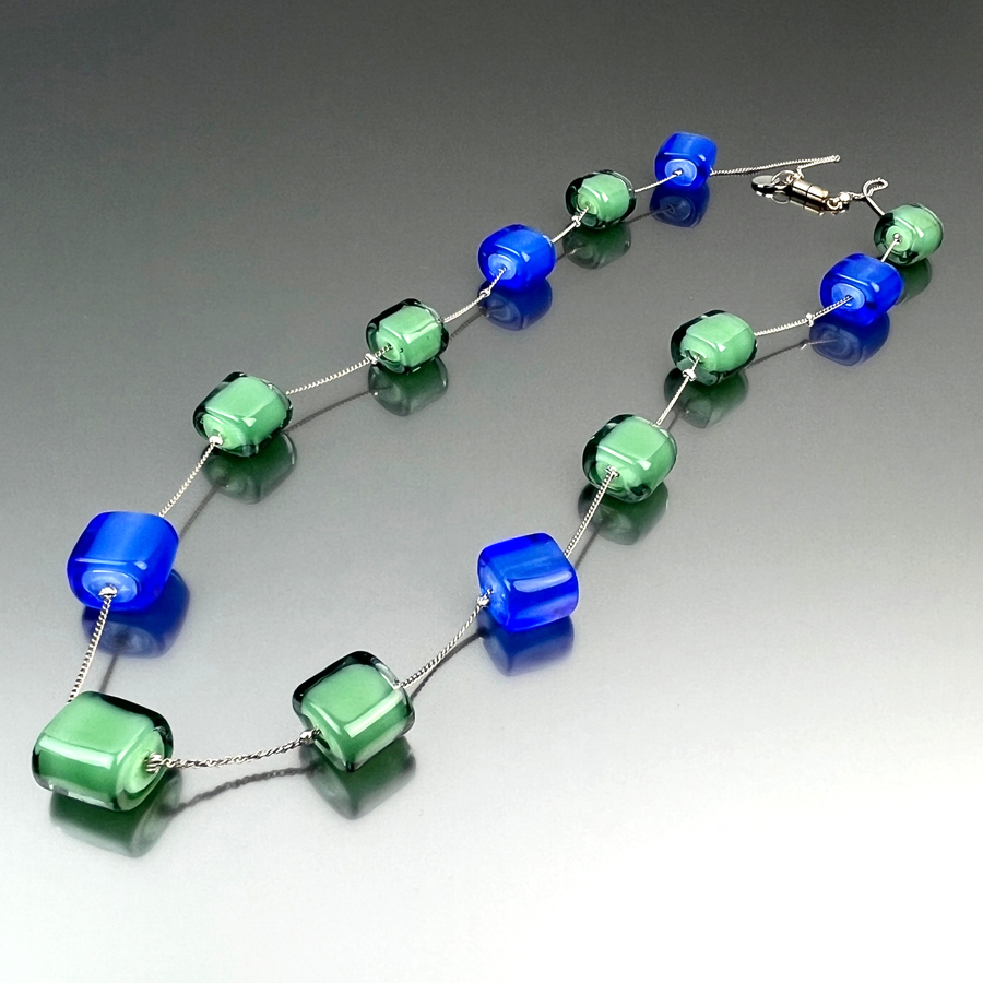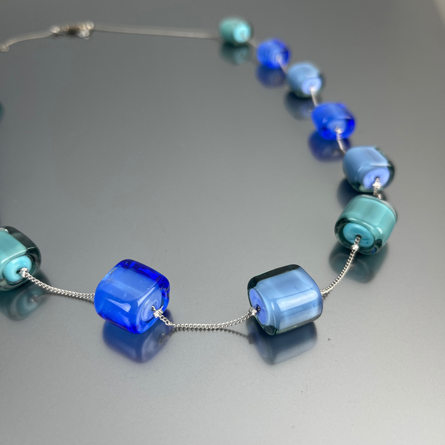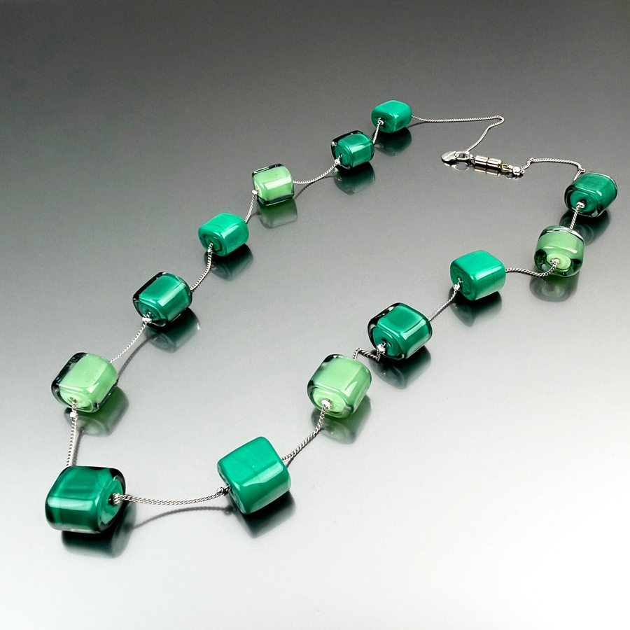 Vetro, catenina in metallo anallergico, chiusura a vite
