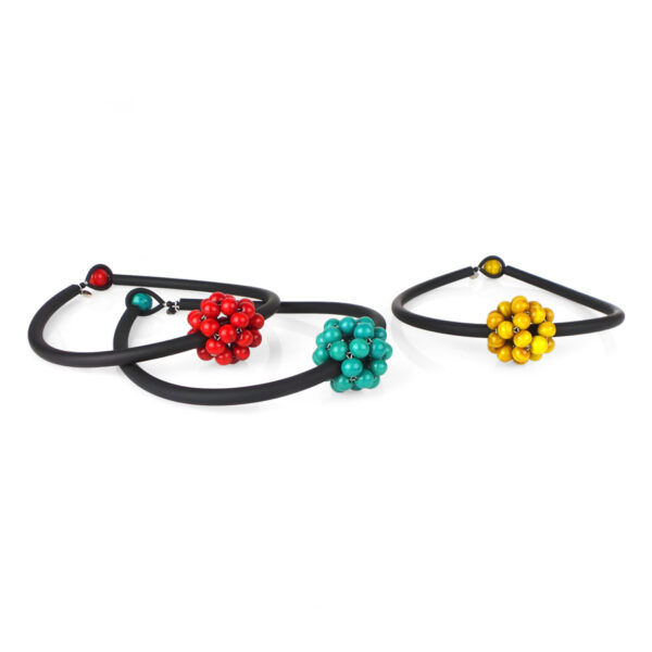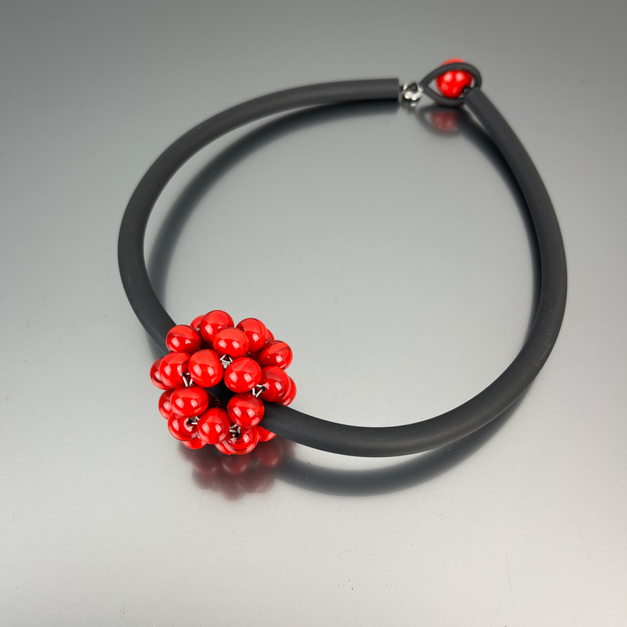 Collana Mora in vetro di Murano dal design moderno, le perle sono realizzate con la tecnica del vetro a lume.