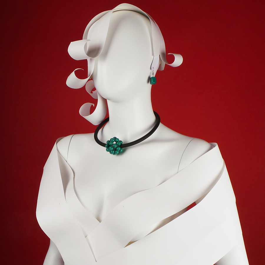 Il girocollo è in gomma la chiusura in gomma e vetro, questo rende la collana ideale per chi soffre di allergie ai metalli