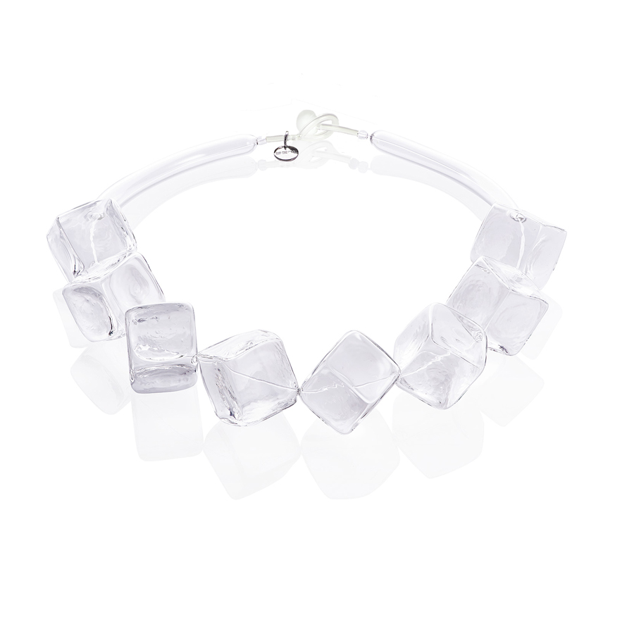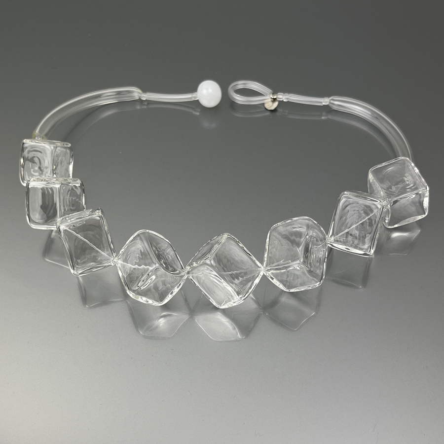 Collana realizzata in vetro soffiato e temprato.