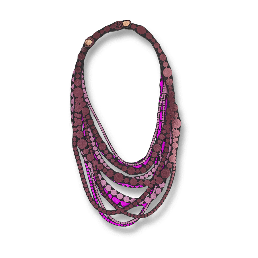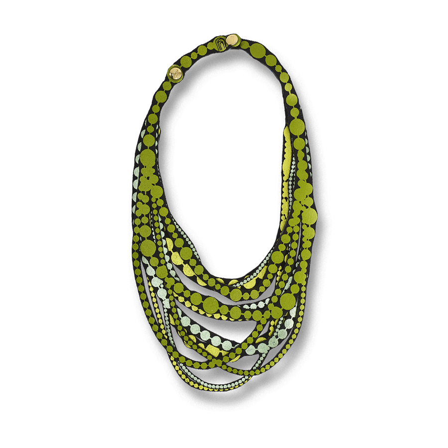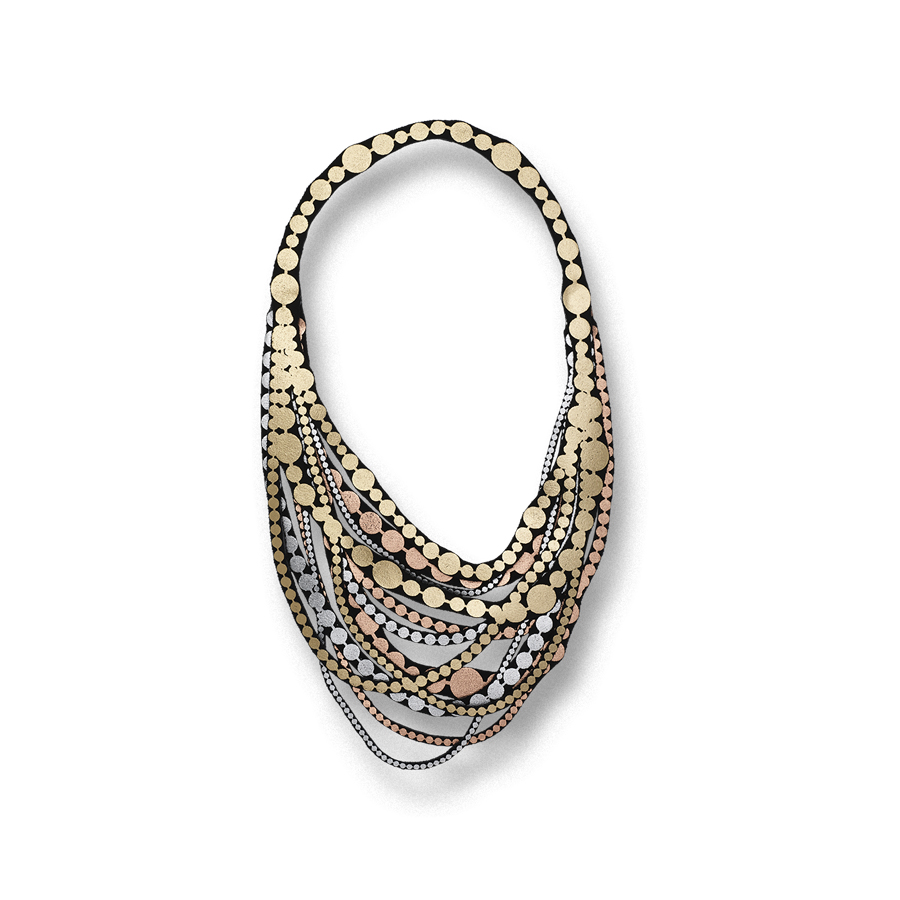 Collana in tessuto, voluminosa e leggera di grande effetto con più giri sovrapposti