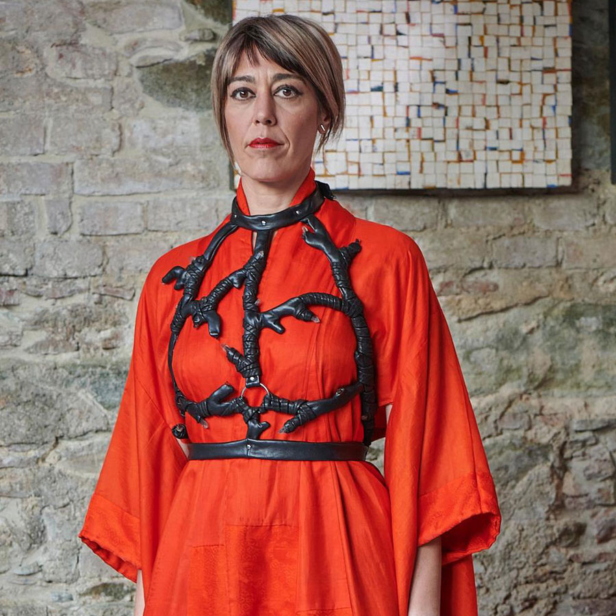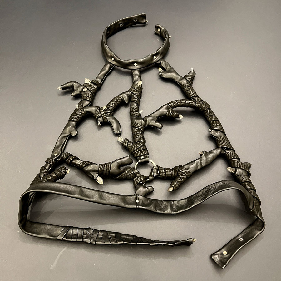 Corpetto in pelle e quarzi interamente lavorato a mano dalla collezione “Different Ornament” pezzi unici come le pietre dure che vengono inserite in questi speciali manufatti.