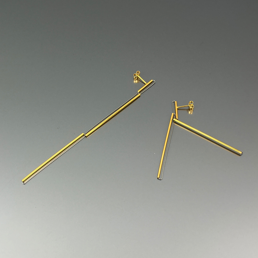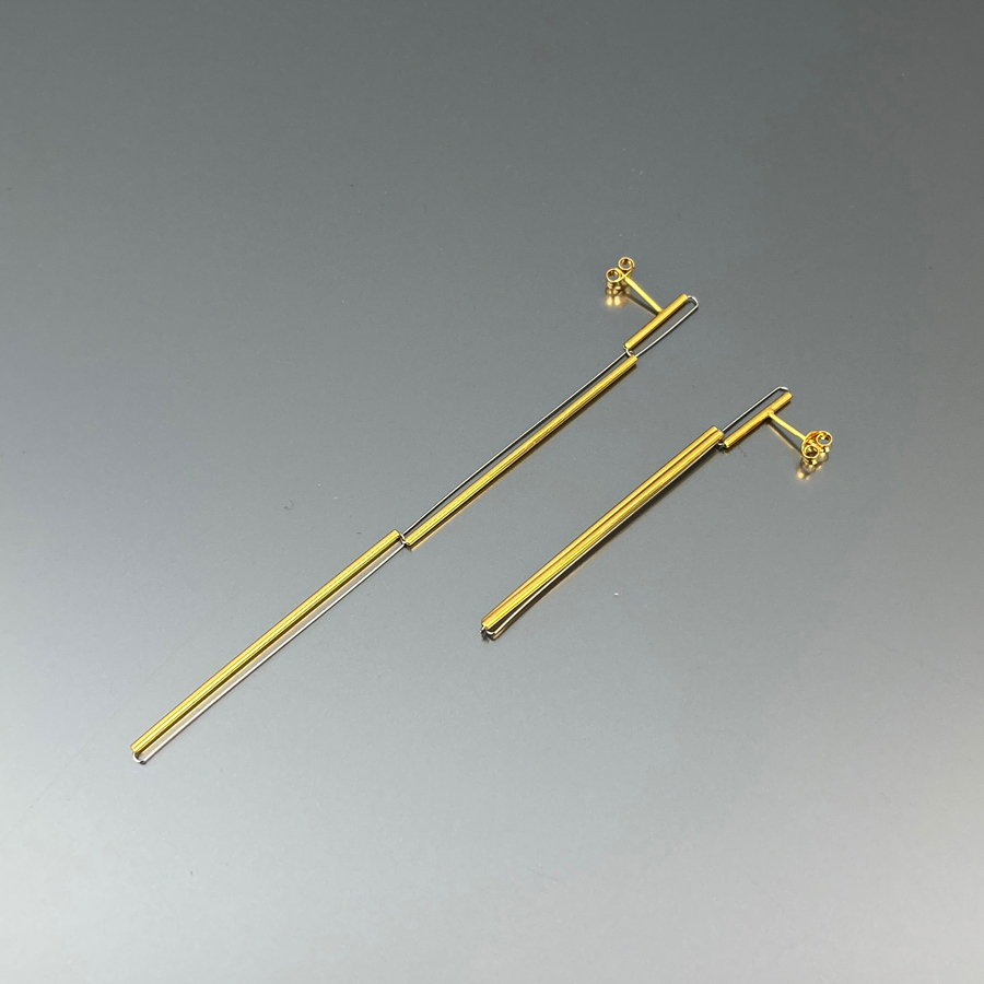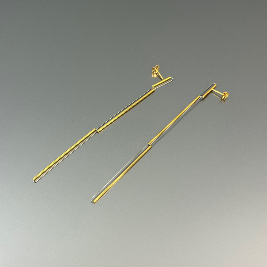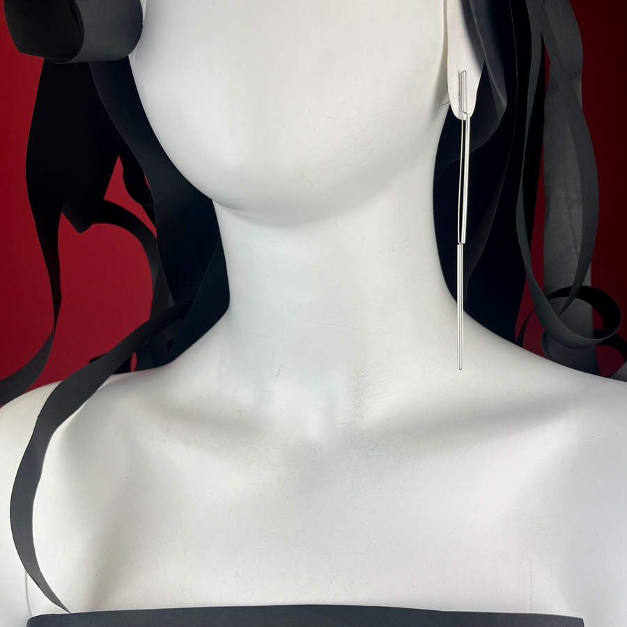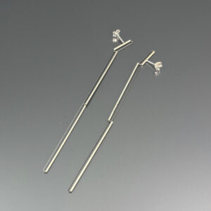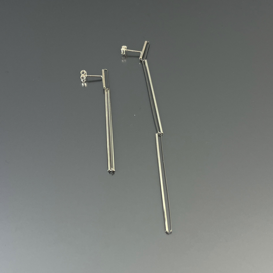Orecchini in argento e acciaio, versatili, con un semplice gesto si possono indossare in due diverse lunghezze.