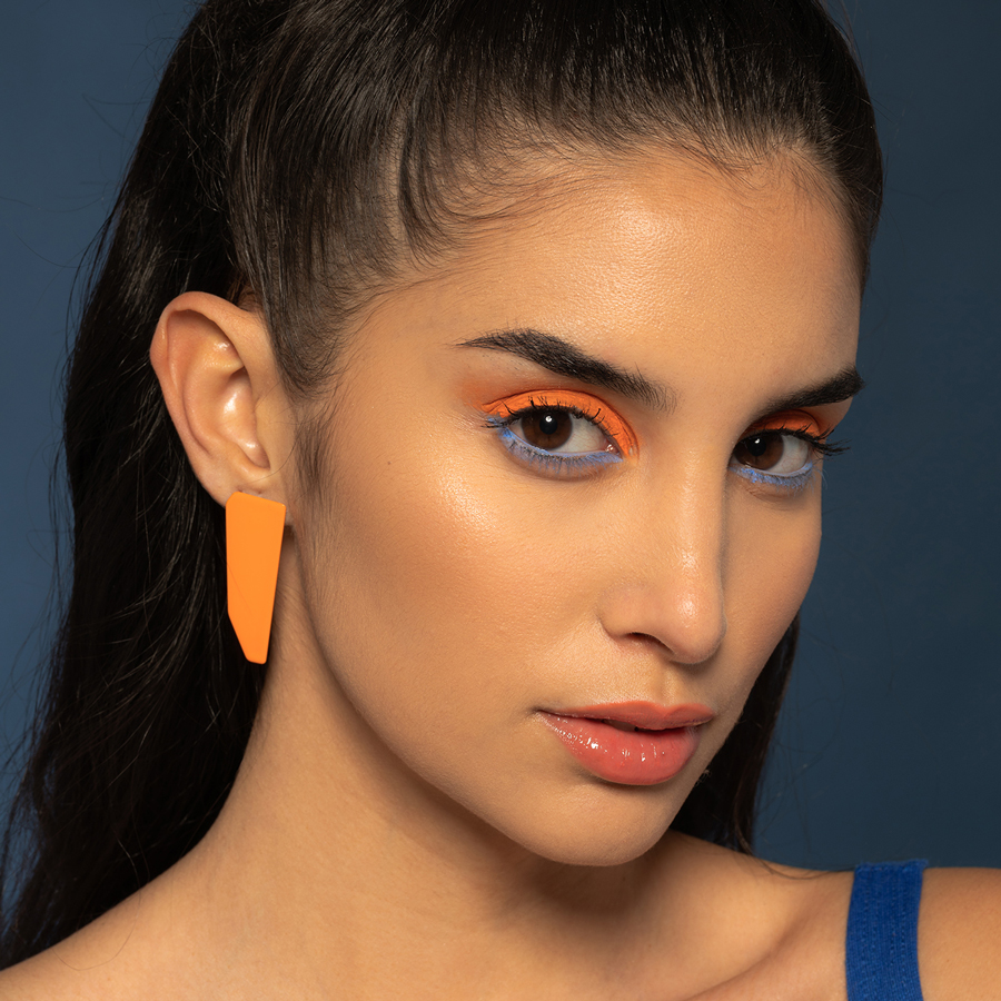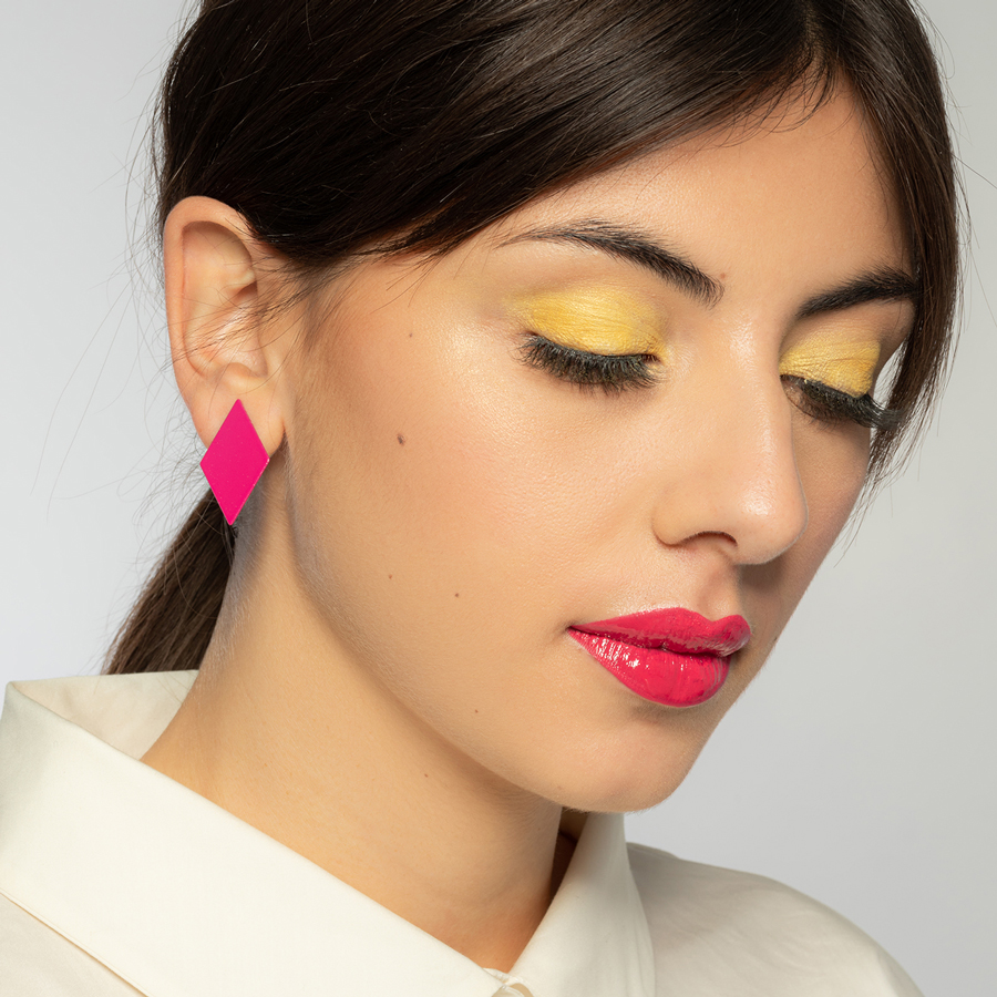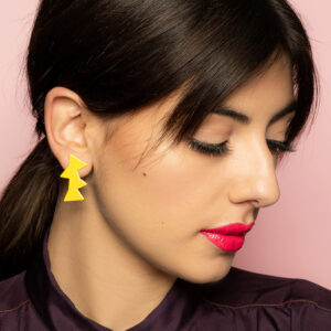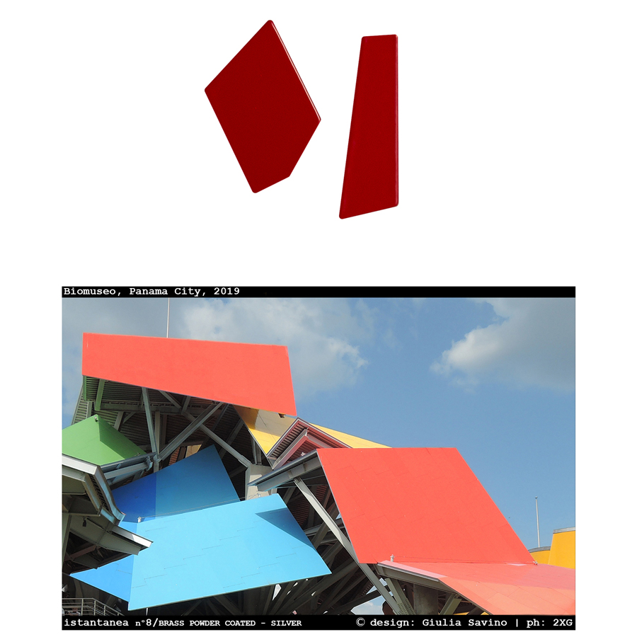 Realizzati in ottone tagliato e verniciato a caldo, con perno in argento, questi gioielli sono frammenti di paesaggio che diventano forma da indossare.