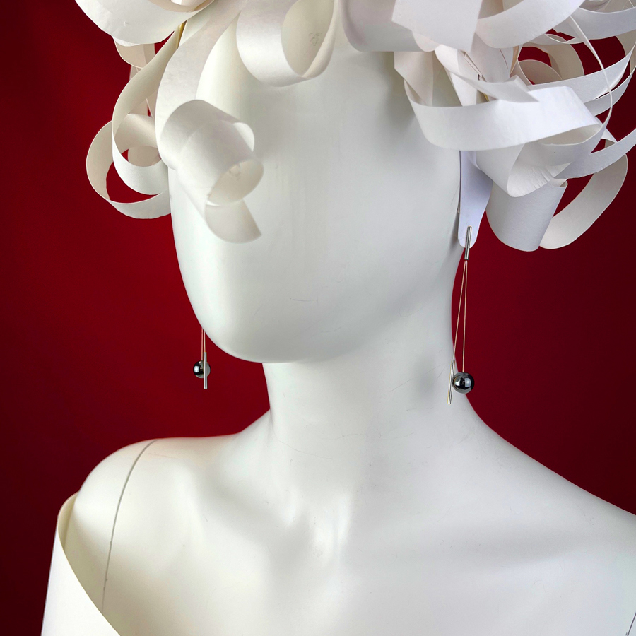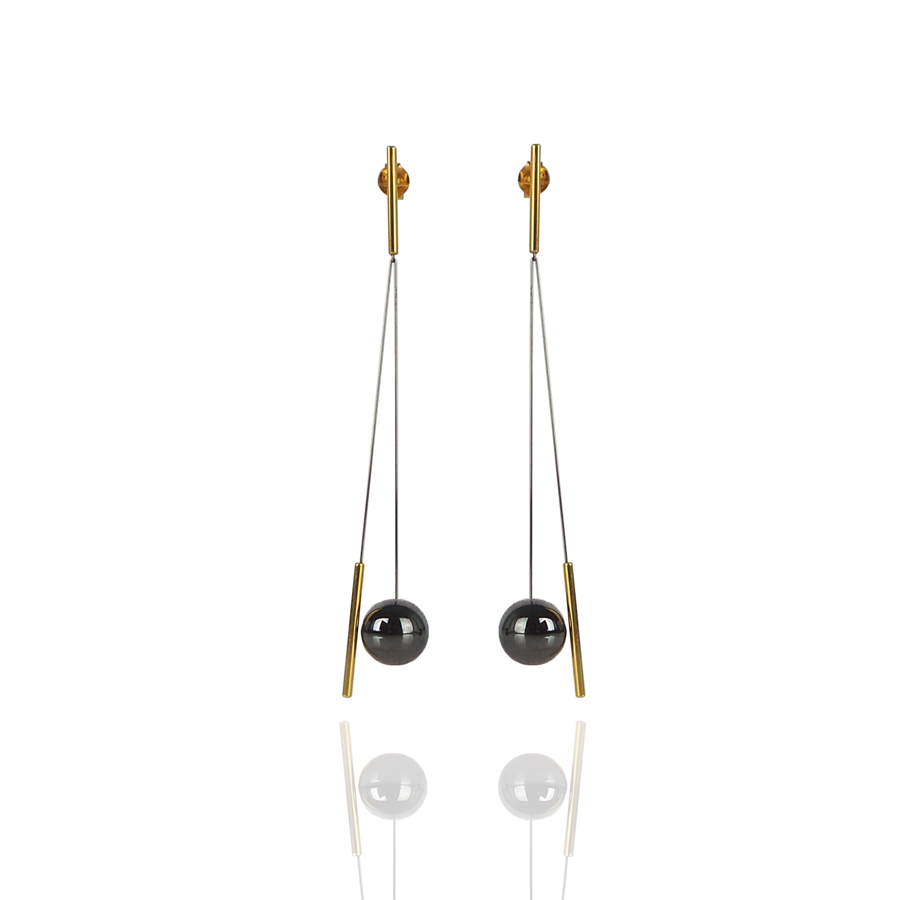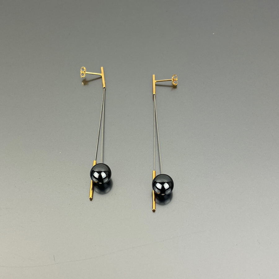 Orecchini in argento placcato oro e filo in acciaio Sfera in ematite