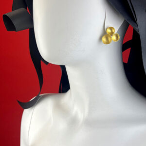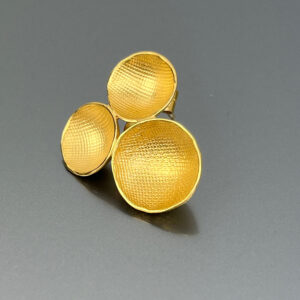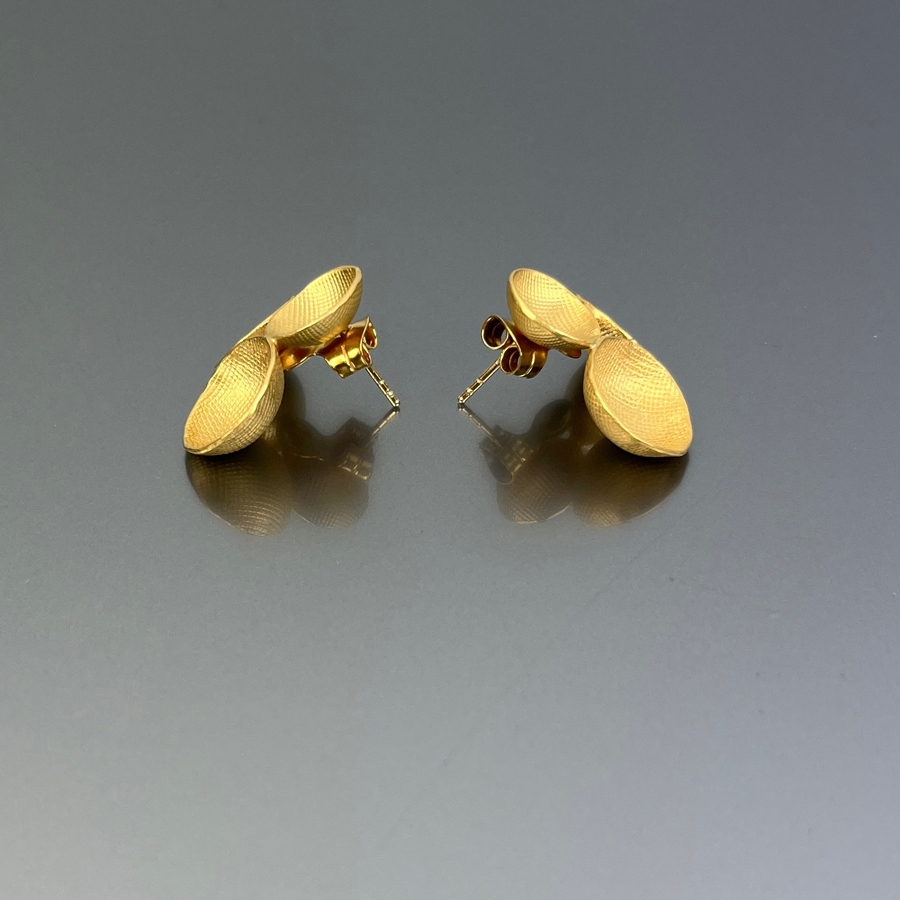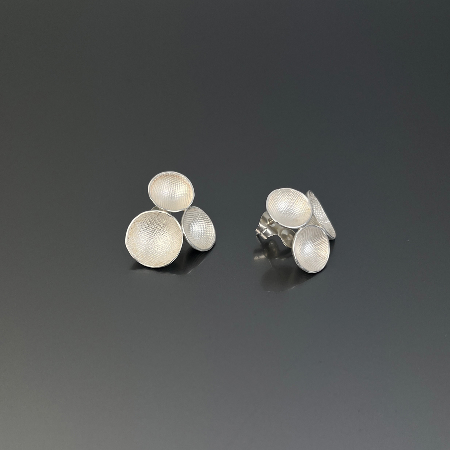 Orecchini tridimensionali formati da tre coppette in argento saldate tra loro.