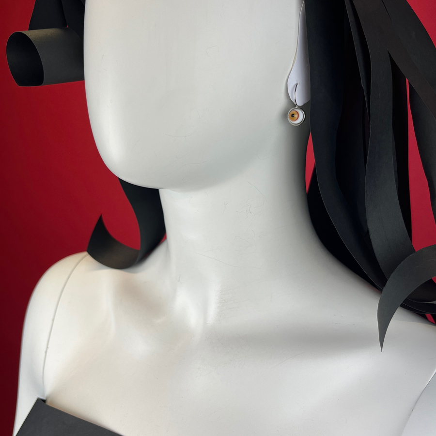 L’occhio è realizzato a mano in vetro con la tecnica a lume, tipica dell’isola di Murano.