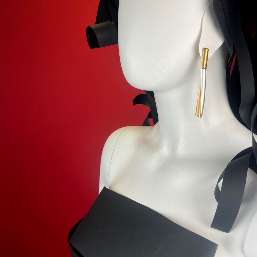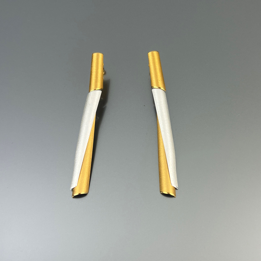 Eleganti orecchini dal design contemporaneo e dinamico ; gli elementi sovrapposti,