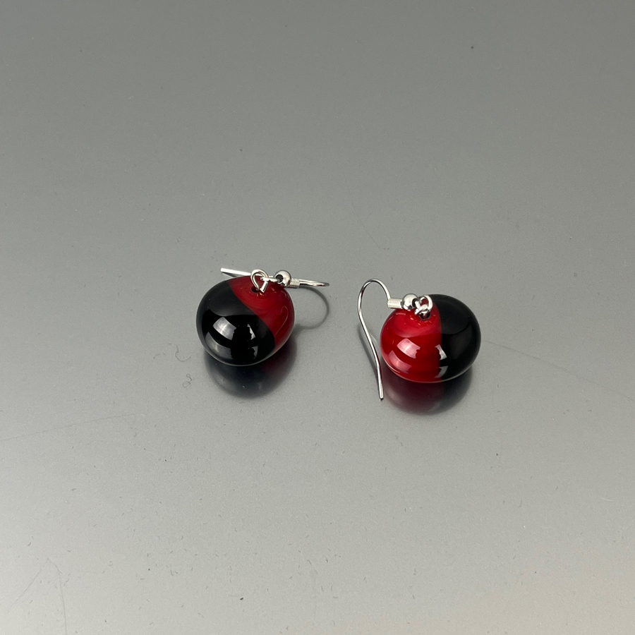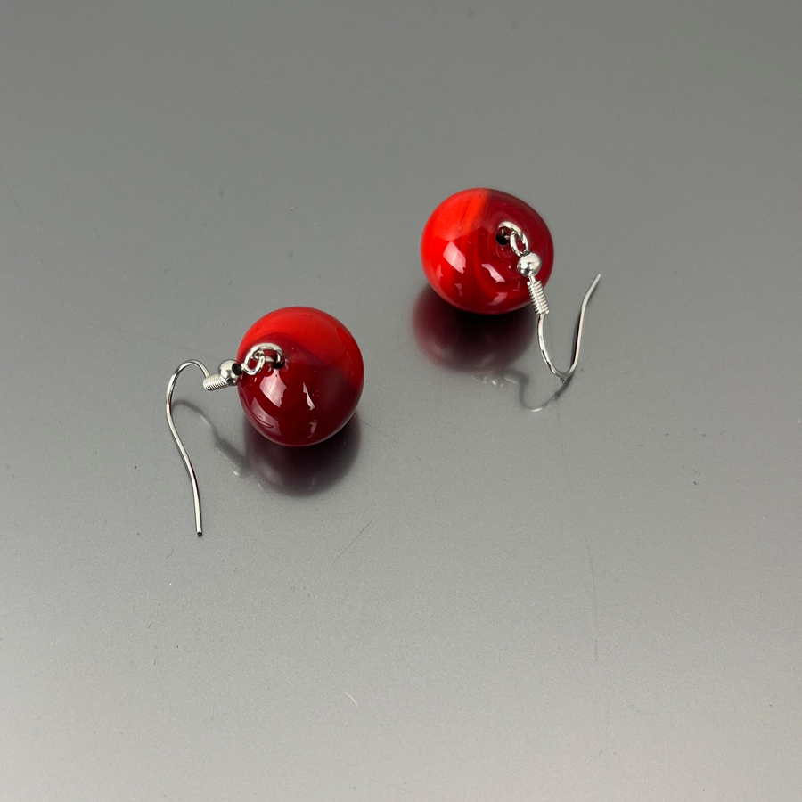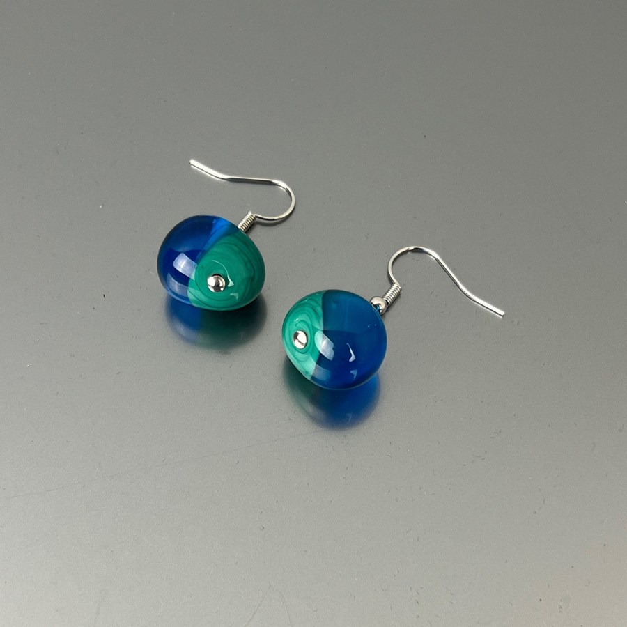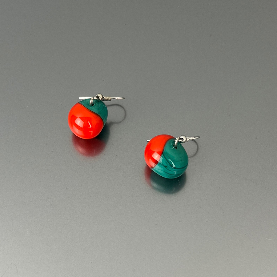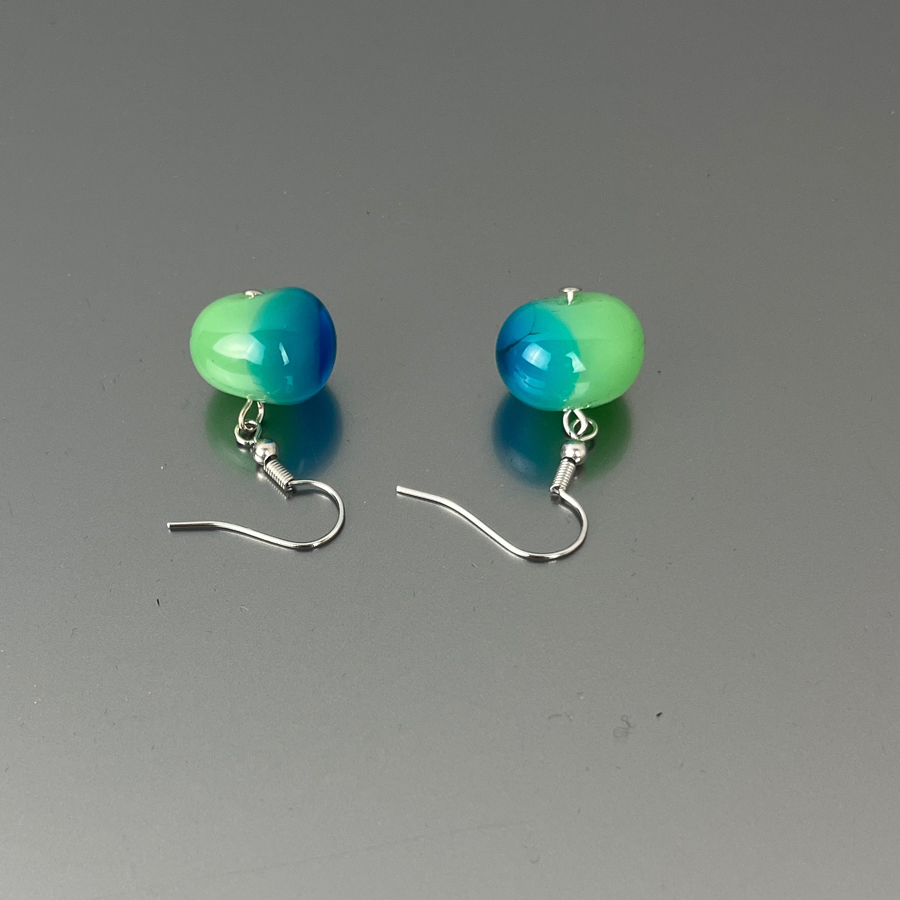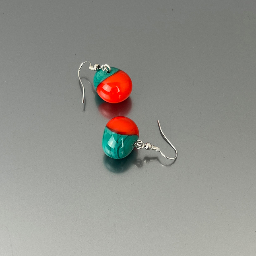 Orecchini in vetro di Murano, realizzati con la tecnica del vetro a lume.