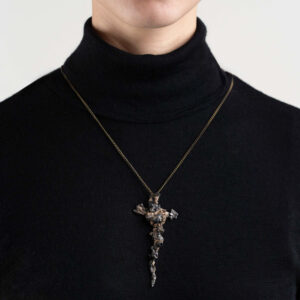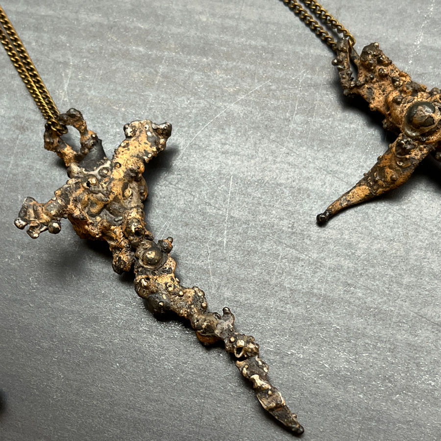 Le Croci Sommerse sono sculture indossabili fatte di ferro grezzo e fuoco.