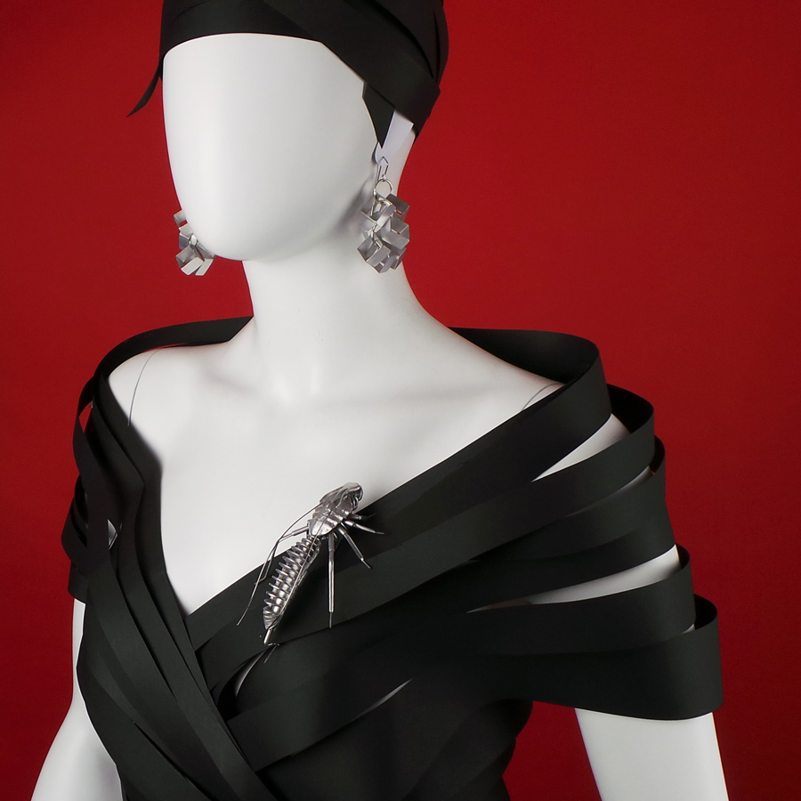 Spilla scultura realizzata interamente a mano assemblando senza saldature oggetti in alluminio di uso comune.Ago in acciaio