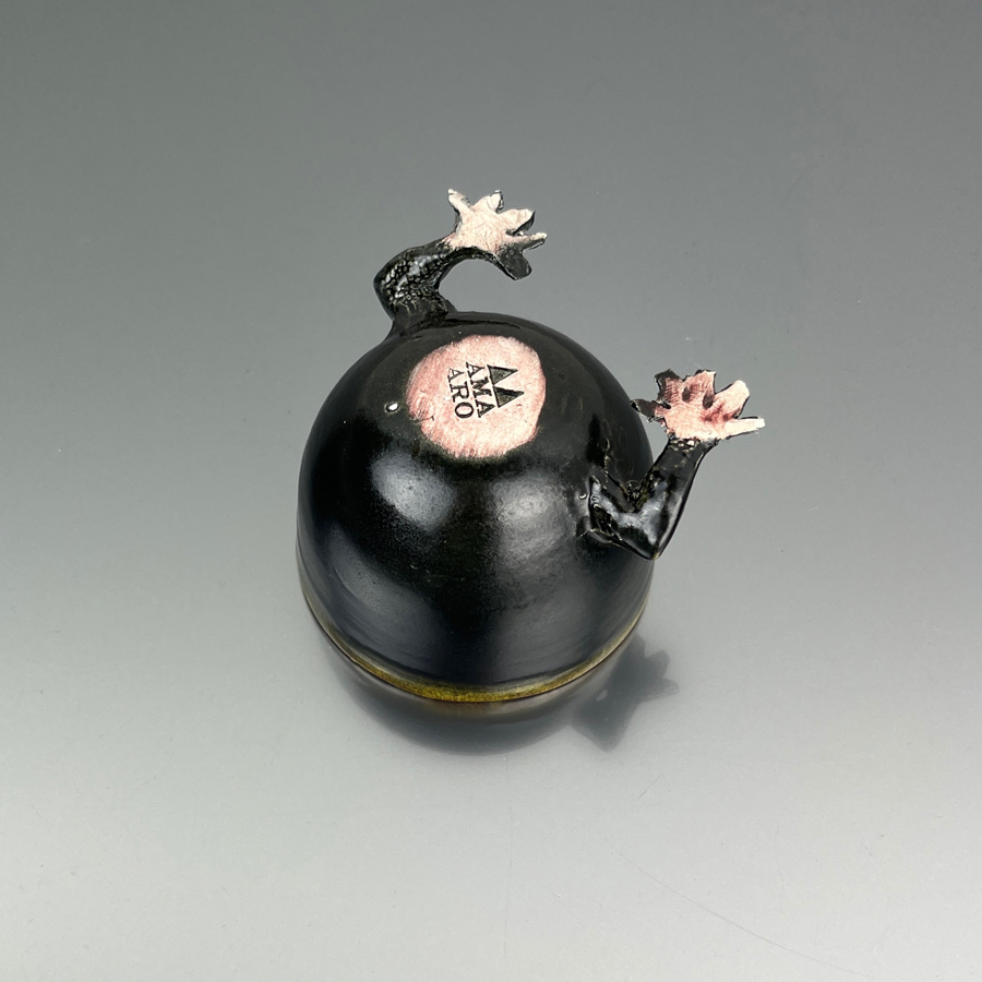 Ciotola in ceramica smaltata con due zampette prese in prestito dalla preistoria.