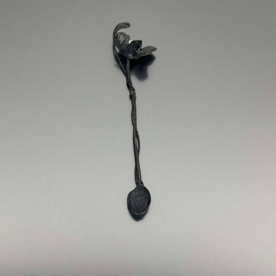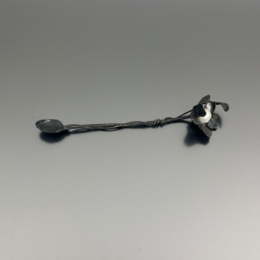 Cucchiaino gioiello realizzato artigianalmente in argento ossidato, con perla