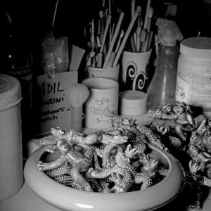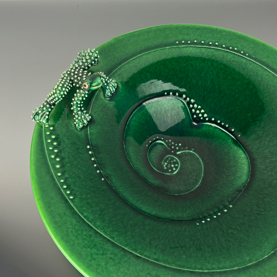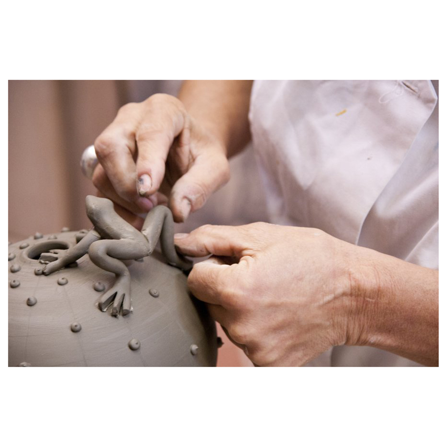 “Le rane cantano per ottenere la pioggia, sono animali lunari e corrispondono all’acqua, e seguono i ritmi fondamentali della natura e forse attirano la felicità. ” Eventuali piccole imperfezioni sono una caratteristica tipica del pezzo unico prodotto in modo artigianale.