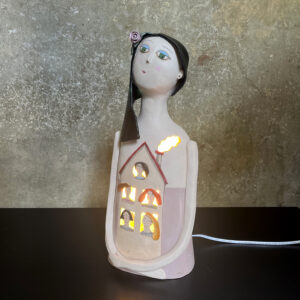 La parte del “busto” è traforata quindi il pezzo può essere facilmente trasformato in scultura luminosa posizionandolo sopra ad una candela o lampadina.