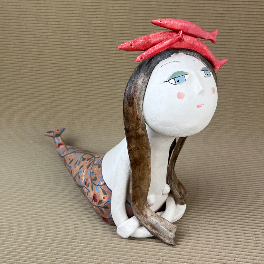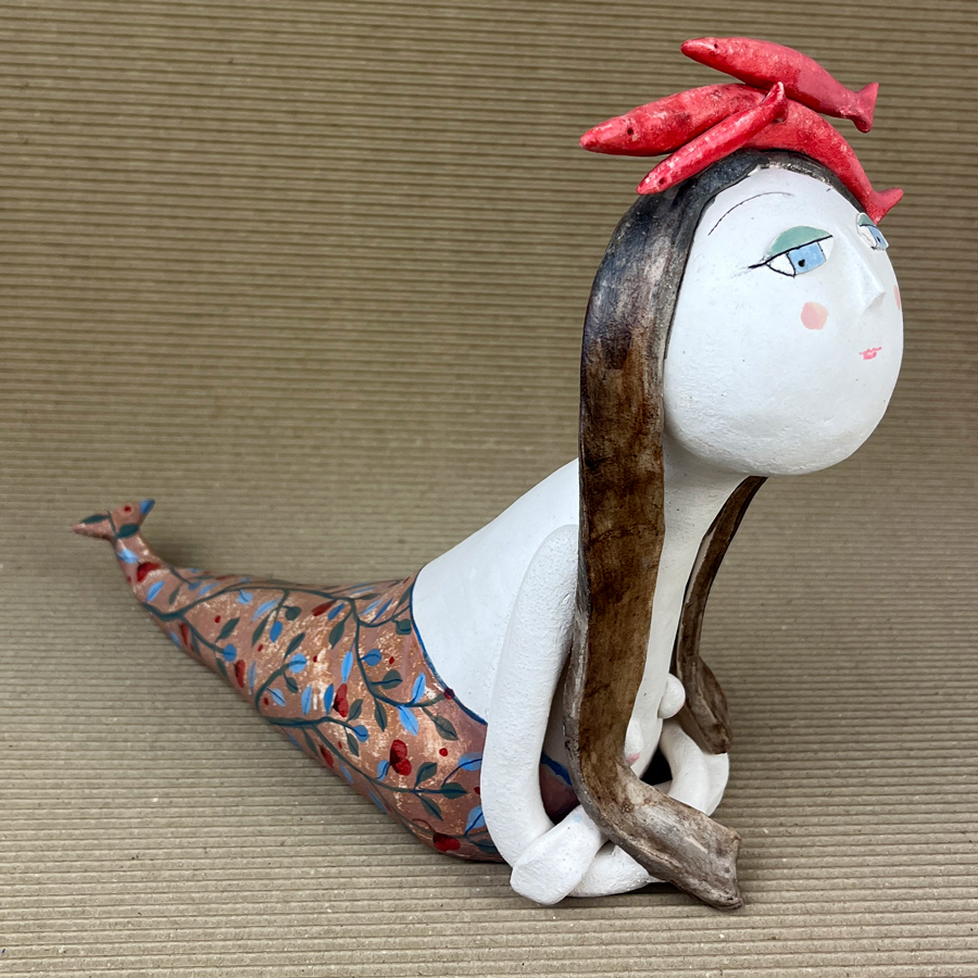 La scultura Sirenetta è interamente modellata a mano, decorata a pennello, resa unica da ogni dettaglio.