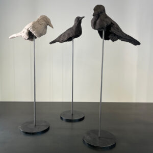 Presenze leggere, sospese, gli uccellini realizzati da Claudia e Martino non raccontano il volo ma ne trattengono l’essenza.