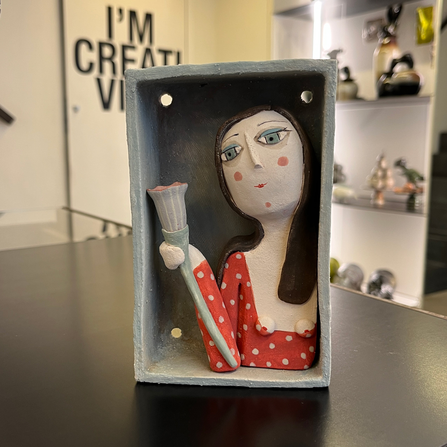 Ogni scatola è modellata a mano, con pareti volutamente irregolari e imperfette, che donano un carattere autentico e vissuto all’opera. I colori matt e le pennellate evocano un’estetica poetica e senza tempo.