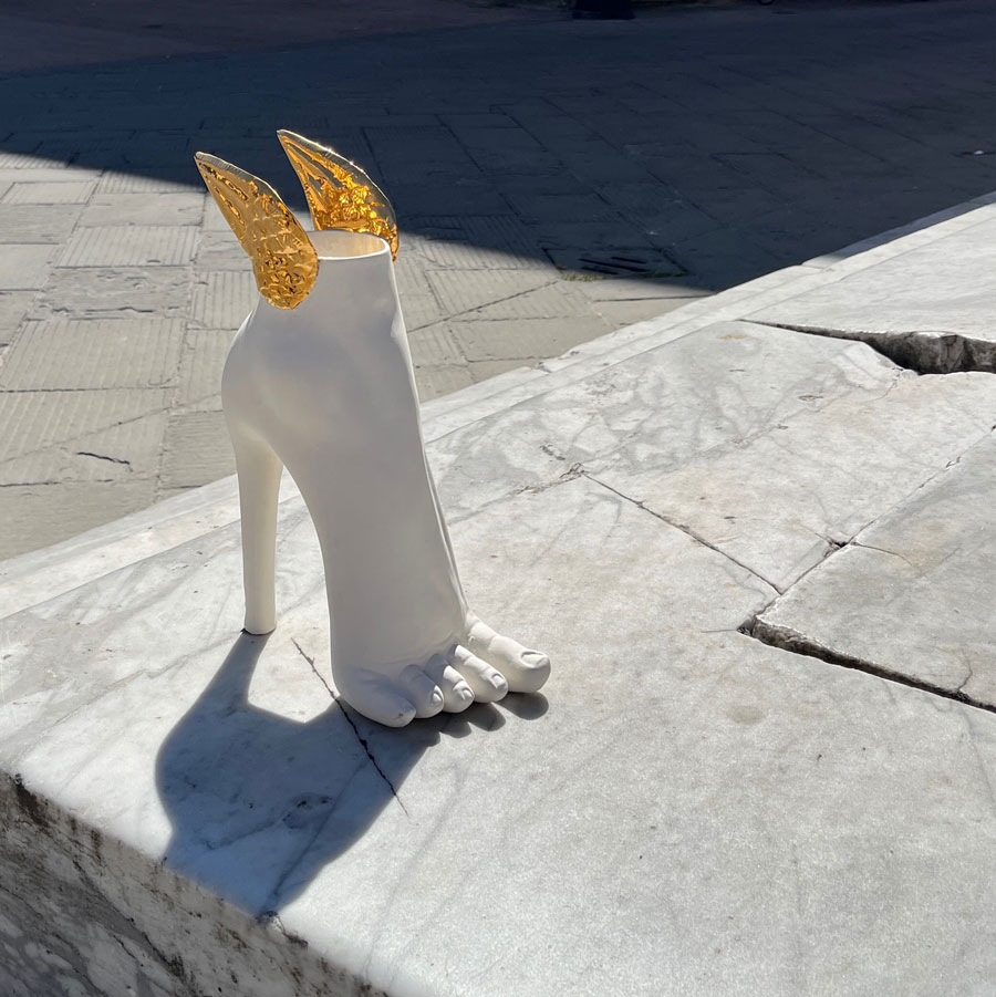 Vaso della serie “Phylocallos” per la collezione “Anatomika” di Elica Studio raffigurante una speciale anatomia del piede con una mutazione: il tacco!.