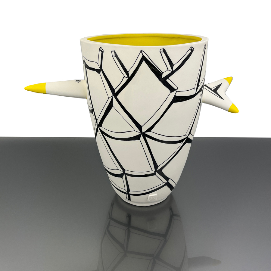 Vaso in porcellana interamente realizzato a mano e decorato a pennello.