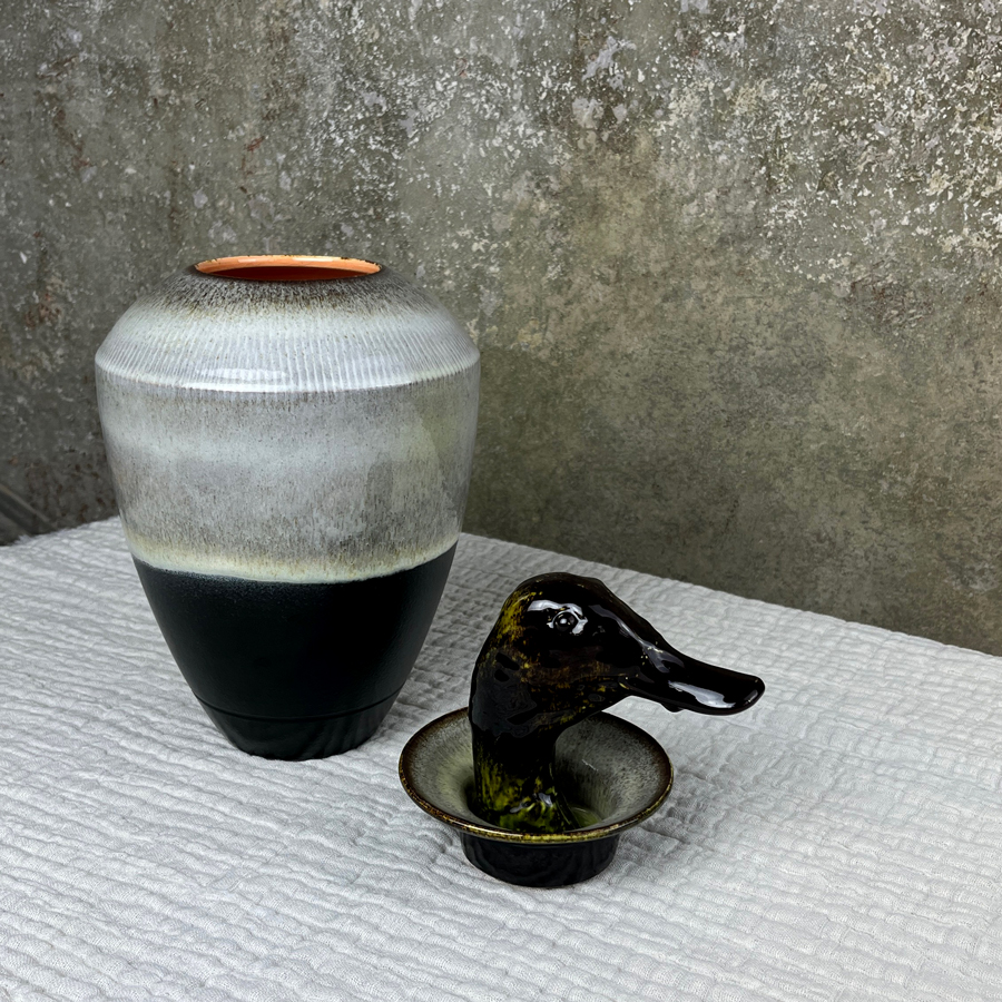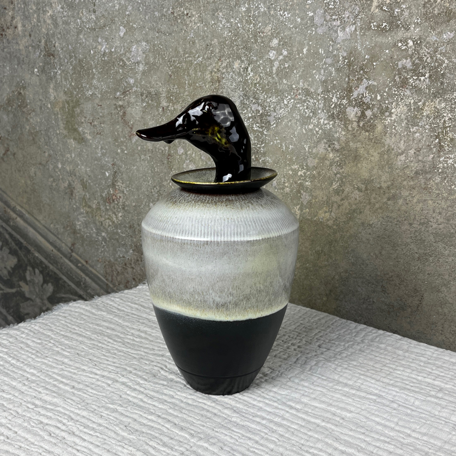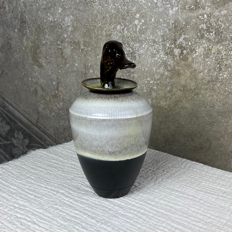 Vaso scultura in ceramica realizzato interamente a mano, composto da due pezzi,