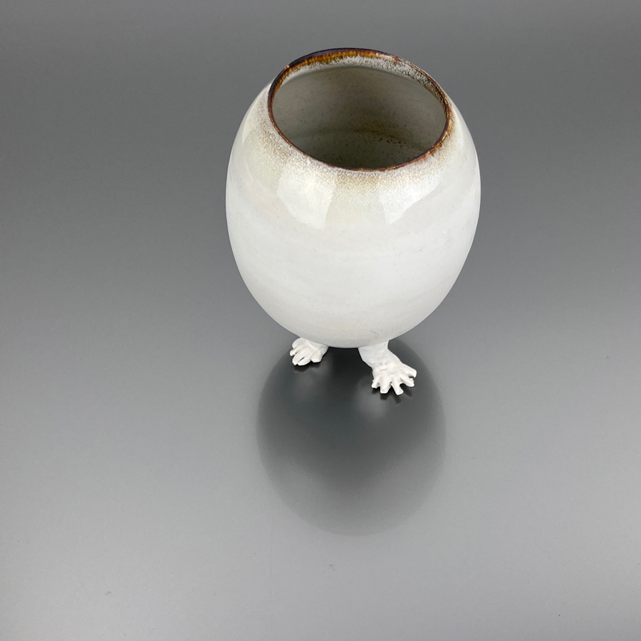 Vaso in ceramica smaltata con quattro zampette prese in prestito dalla preistoria.