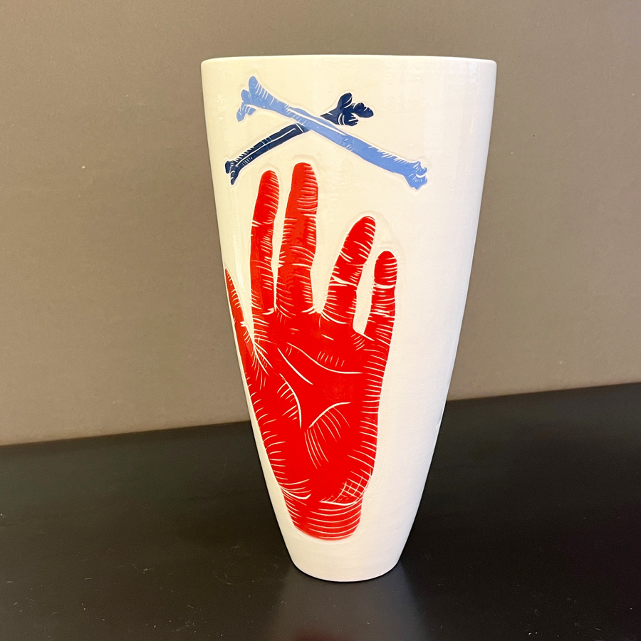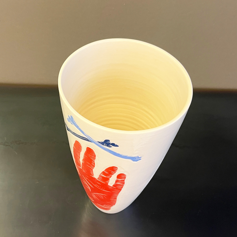 Le decorazioni nascono da una libertà assoluta, dove l’istinto guida la mano e la pittura diventa gesto spontaneo, quasi automatico.Ogni vaso è un unicum: un oggetto che porta con sé la leggerezza del gioco e la profondità del simbolo.