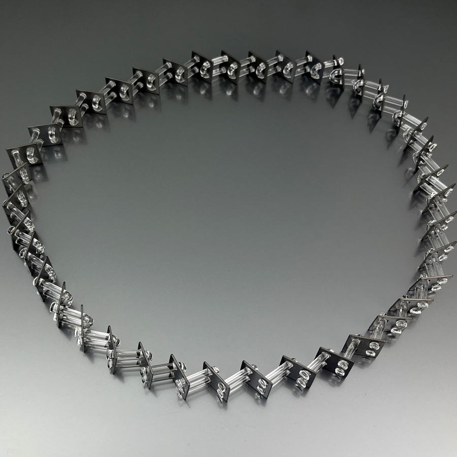 La sua ricerca, attiva a livello internazionale dagli anni Novanta, esplora il dialogo tra gesto artigianale e produzione industriale. Il vetro – spesso borosilicato – e il metallo si combinano in strutture modulari essenziali, che richiamano il linguaggio della modernità: catene, sequenze, sistemi.